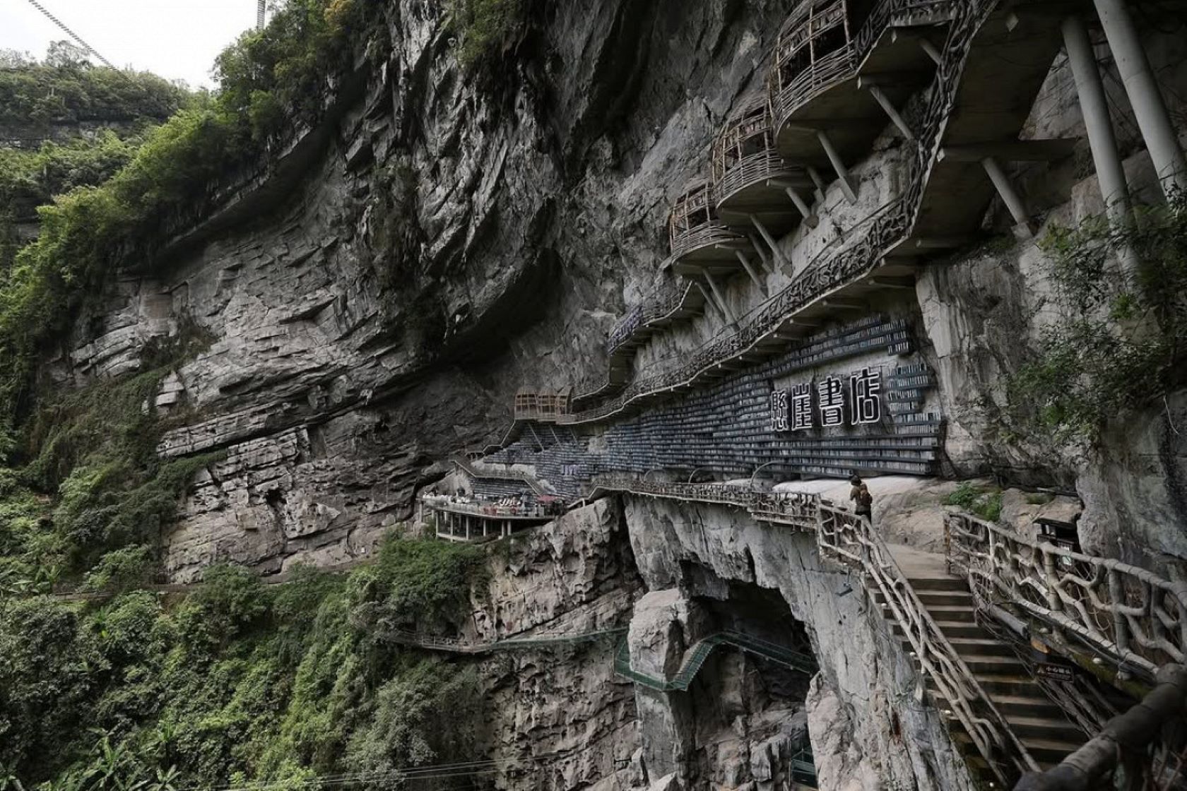 В 2025 году в Южном Китае в провинции Гуанси открылся книжный магазин на краю 300-метрового обрыва. С момента открытия в мае здесь побывали около 100 000 человек.